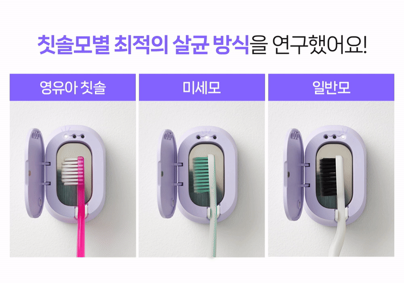 제품 상단 버튼을 짧게 눌러 칫솔모별 최적의 살균/건조 방식을 선택해요.
