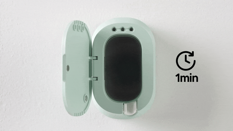 살균기 제품의 뚜껑을 열면 3초의 카운트다운 후 양치시간 기록이 시작됩니다.